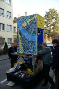 Eso isch d Ladärne denn in kirzischter Zyt uff em Waage montiert